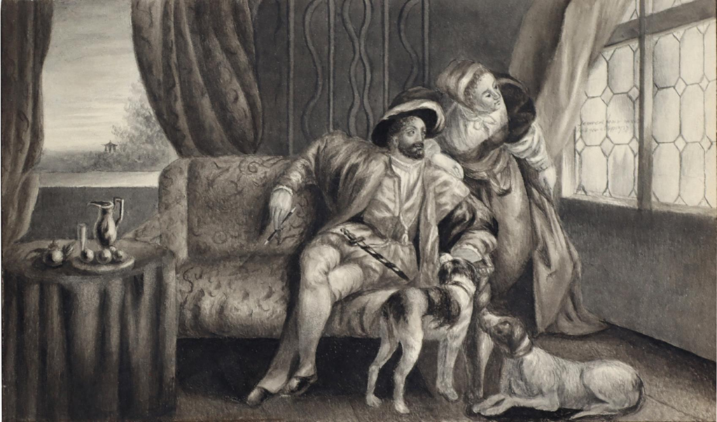 De themakeuze van Kranenborgs vroege tekening is in lijn met onderwerpen van haar geschilderde werk. Enkele van de eerste schilderijen die Albertina tentoonstelt, tonen Jacoba van Beieren op slot Teijlingen (tentoongesteld in Amsterdam 1848) en Anna Boleyn op Hever Castle (tentoongesteld in Den Haag 1850), zoals ook te lezen was in het vorige artikel over Kranenborg: ‘Zelfportret met haar zussen’. In 1850 stuurt ze bovendien een scène uit het verhalende gedicht The Lady of the Lake van Sir Walter Scott naar de stedelijke tentoonstelling in Amsterdam. Zelf schrijft Kranenborg in een begeleidend schrijven bij de inzending over